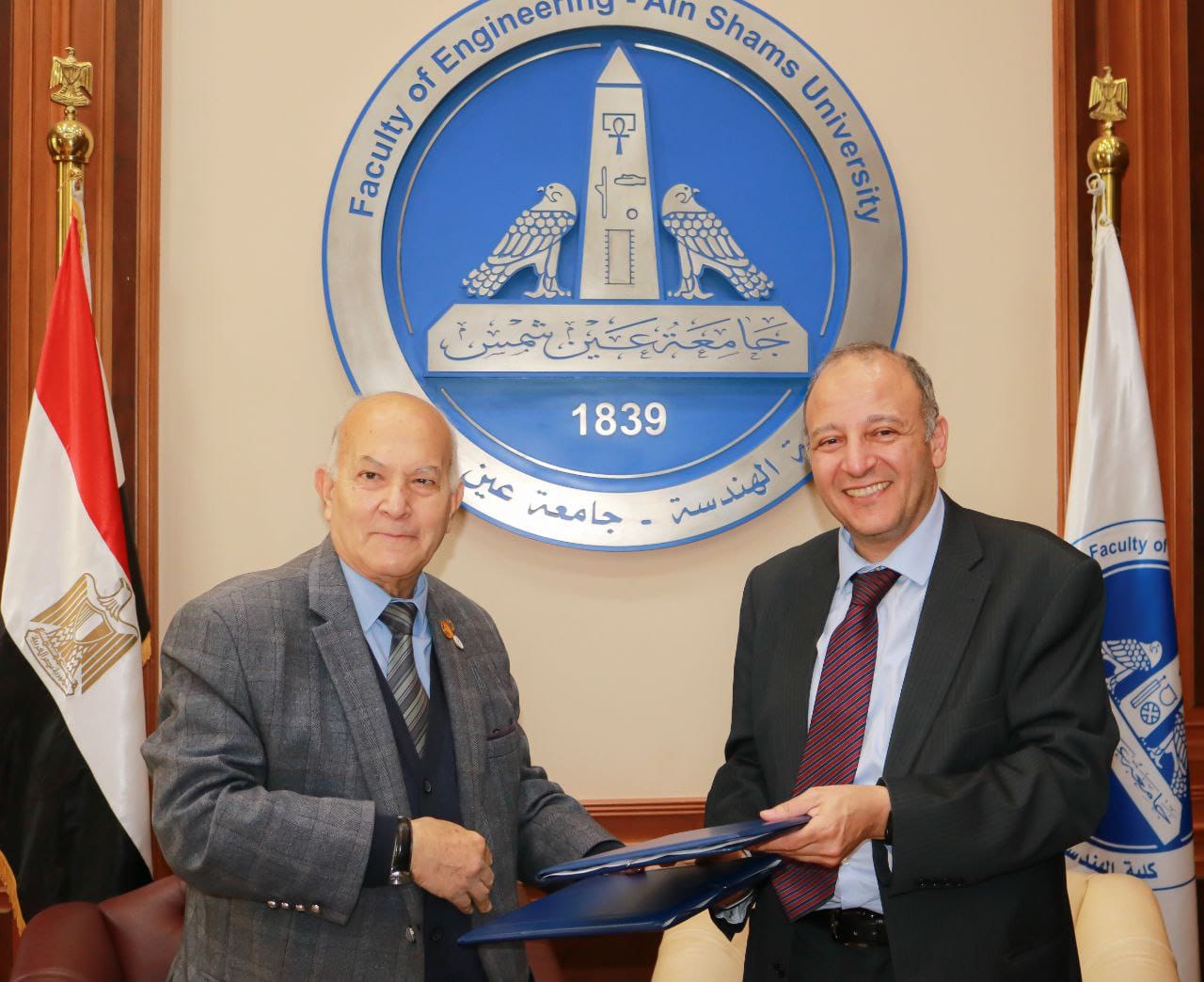 A cooperation agreement between the Faculty of Engineering, Ain Shams University and the Egyptian Society of Engineers was signed at the Faculty of Engineering at Ain Shams University on Thursday, 14 December 2023, Under the supervision of Professor Omar ElHusseiny, Dean of the Faculty of Engineering Ain Shams University and in the presence of Professor Ahmed Moneeb ElSabbagh, Vice Dean for Education and Students Affairs and representative of the consultant engineer Farouk al-Hakim, Secretary-General of the Egyptian Society of Engineers and a representative of the Egyptian society in signing, in the presence of Professor Doaa Kamaleldin, coordinator of the cooperation agreement, and Professor Mohamed Abdelaziz Hassan, Acting Head of Electrical Power and Machines Engineering Department and Member of the Society, and Doctor Mohamed Ezzat Abdel Rahman, Associate Professor of Power and Electrical Machinery Engineering.