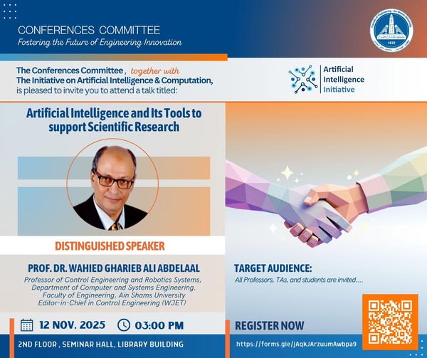 Join us for an insightful session titled “Artificial Intelligence and Its Tools to Support Scientific Research” — exploring how AI is revolutionizing the way we design, analyze, and innovate in science and engineering.