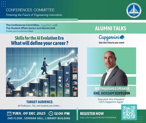 The event will take place on Tuesday, 09 December 2025 at 12:00 PM, at the Seminar Hall, 2nd Floor, Library Building, Faculty of Engineering, Ain Shams University. Whether you are a professor, teaching assistant, or student, this talk will equip you with valuable perspectives to navigate and excel in the evolving landscape of engineering and technology.