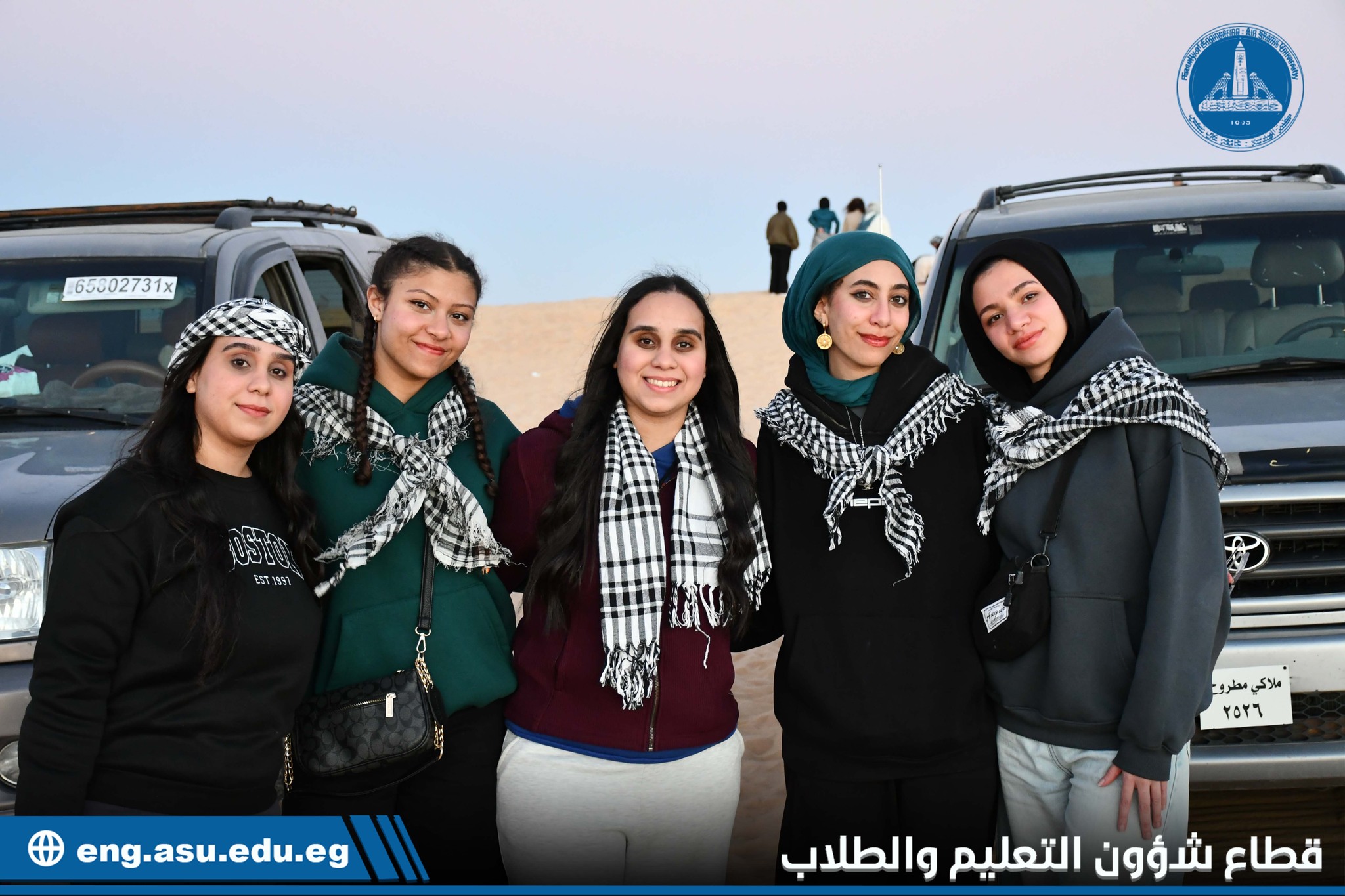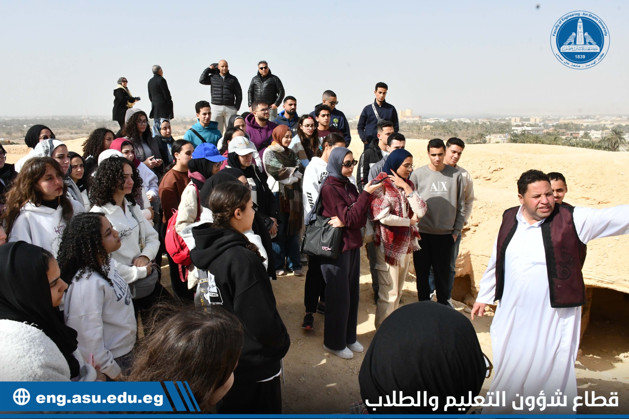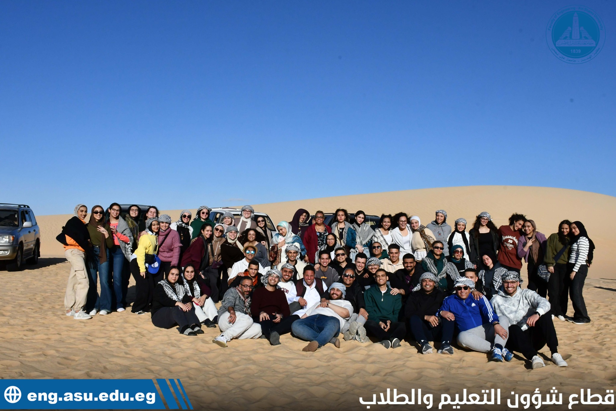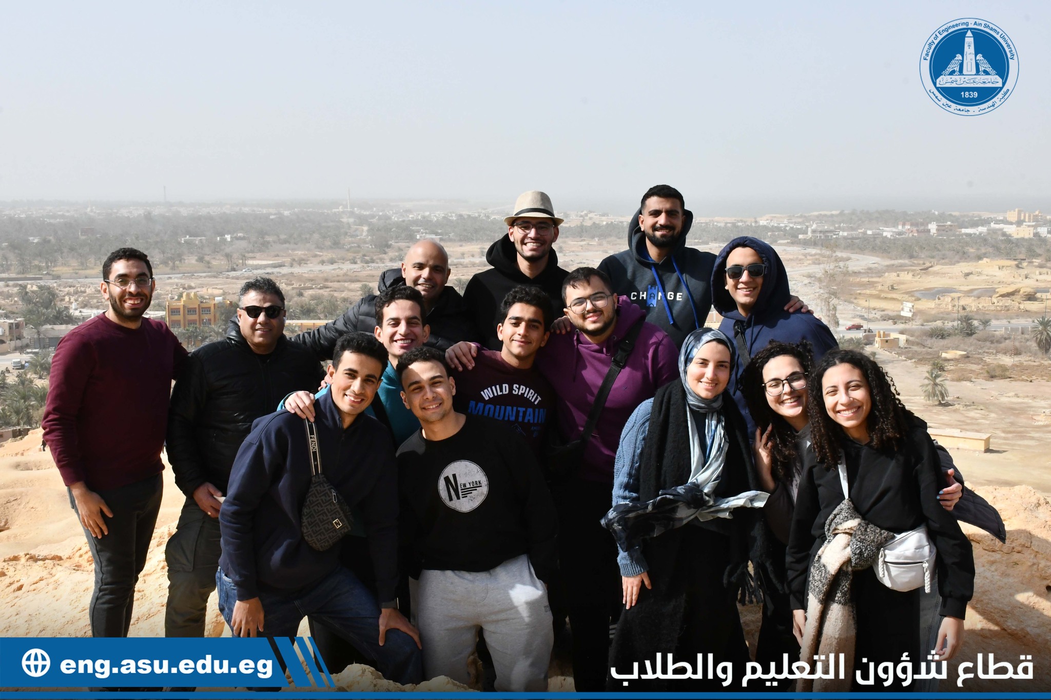 As part of the commitment of the Faculty of Engineering at Ain Shams University to supporting student activities, the Students’ Union, in cooperation with the Youth Welfare Administration, organized an educational and recreational trip for faculty students to Siwa Oasis during January 2025. The trip was held under the supervision of Prof. Dr. Amr Shaat, Dean of the Faculty; Prof. Dr. Mohamed Abdelaziz, Vice Dean for Education and Student Affairs; and Associate Prof. Ahmed Abdelhamid, Student Activities Coordinator.