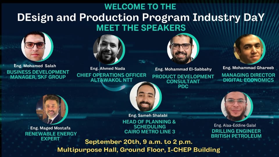 ندوة يقدمها مجموعة من المهندسين في مختلف قطاعات سوق العمل لتعريف الطلاب بسوق العمل وإلقاء الضوء على المجالات المختلفة للعمل ومتطلبات الصناعة للمهارات الهندسية كما يشمل اللقاء حوار مفتوح بين الحضور والسادة خبراء الصناعة.
