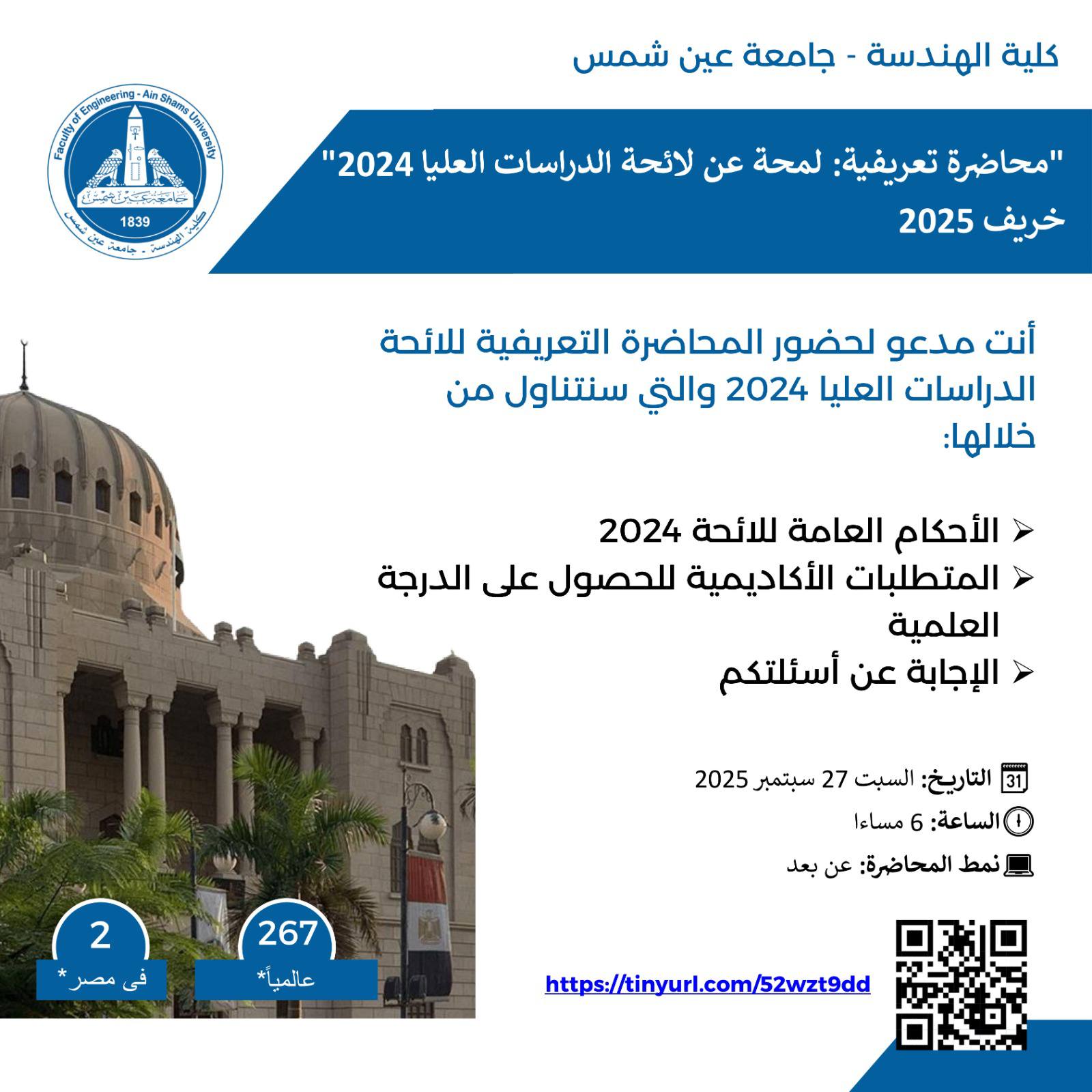 دعوة لحضور محاضرة تعريفية للائحة الدراسات العليا 2024