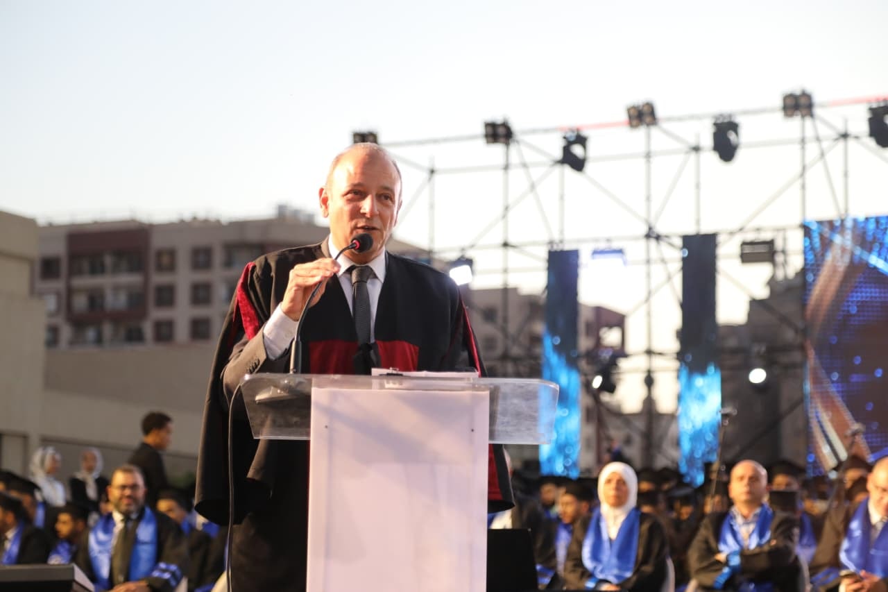 وأشار الدكتور محمد ضياء زين العابدين إلى سعادته بالمشاركة في هذه المناسبة التي تجسد مكانة كلية الهندسة كمنارة للعلم والتميز، مؤكدًا أن هذا اليوم يمثل محطة فارقة في حياة الخريجين، تتويجًا لسنوات من الجد والاجتهاد، وبداية لمسيرة جديدة من العطاء في خدمة الوطن، موضحًا أن ما اكتسبه الخريجون من علم ومعرفة داخل هذا الصرح العريق سيكون زادًا لمستقبل واعد، وبوصلة تقودهم نحو الإبداع والمشاركة الفاعلة في بناء المجتمع، وأوصى الخريجين بالتمسك بالقيم الأخلاقية والمهنية، وأن يكونوا خير سفراء لجامعتهم، موجهًا خالص التهنئة لهم ولأسرهم، ومتمنيًا لهم مستقبلًا مشرقًا حافلا بالنجاح والتوفيق.
