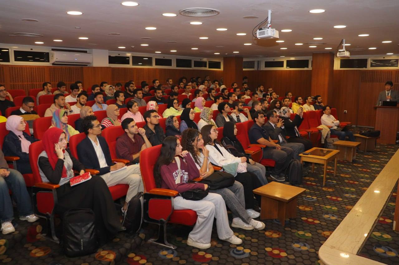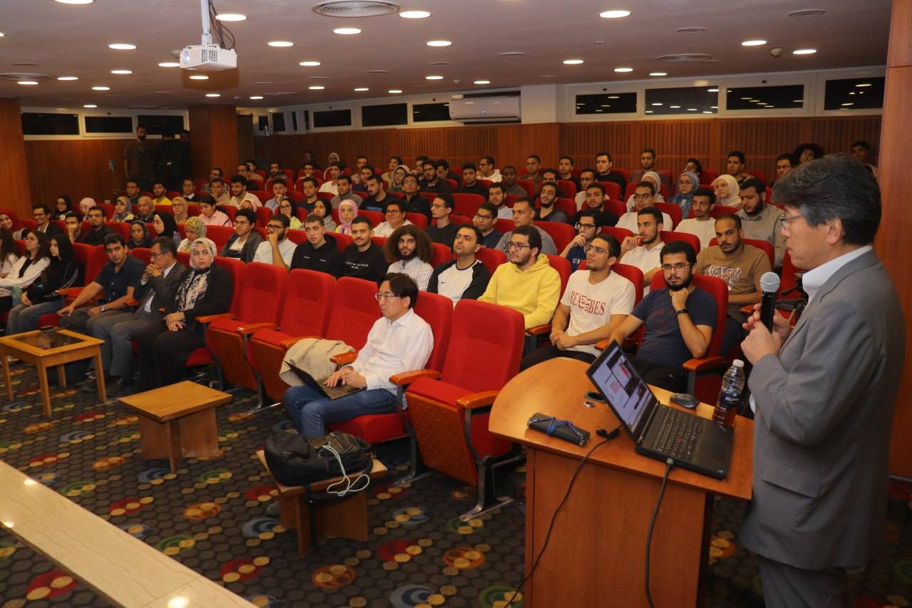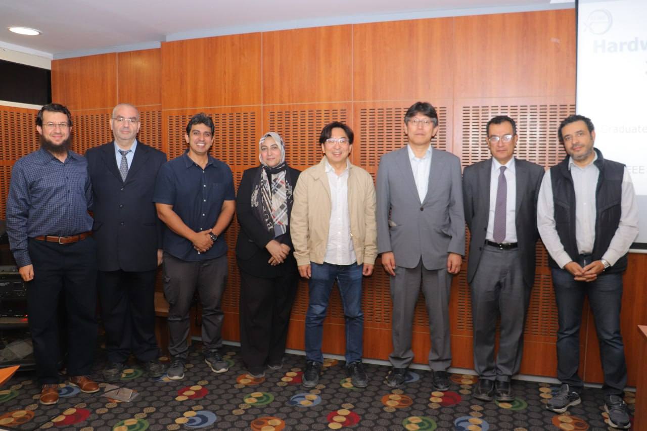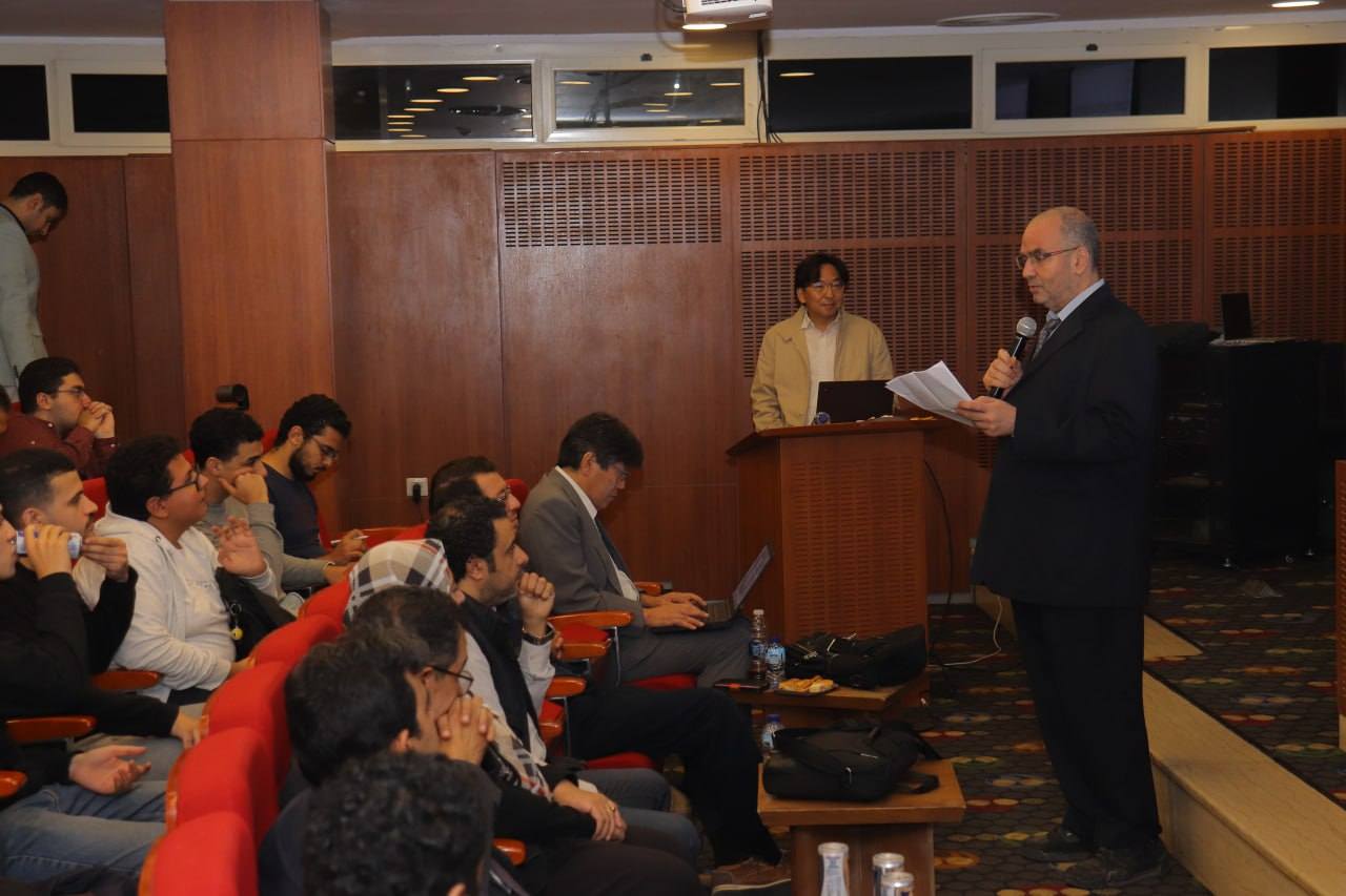 وذلك فى حضور عديد من طلاب قسم هندسة الحاسبات والنظم وقسم هندسة الالكترونيات والاتصالات الكهربية وأعضاء هيئة التدريس بالقسمين وكذلك ضيوف من أعضاء منIEEE Solid-State Circuits Society (SSCS) Egypt Chapter من الجامعات مصرية.
