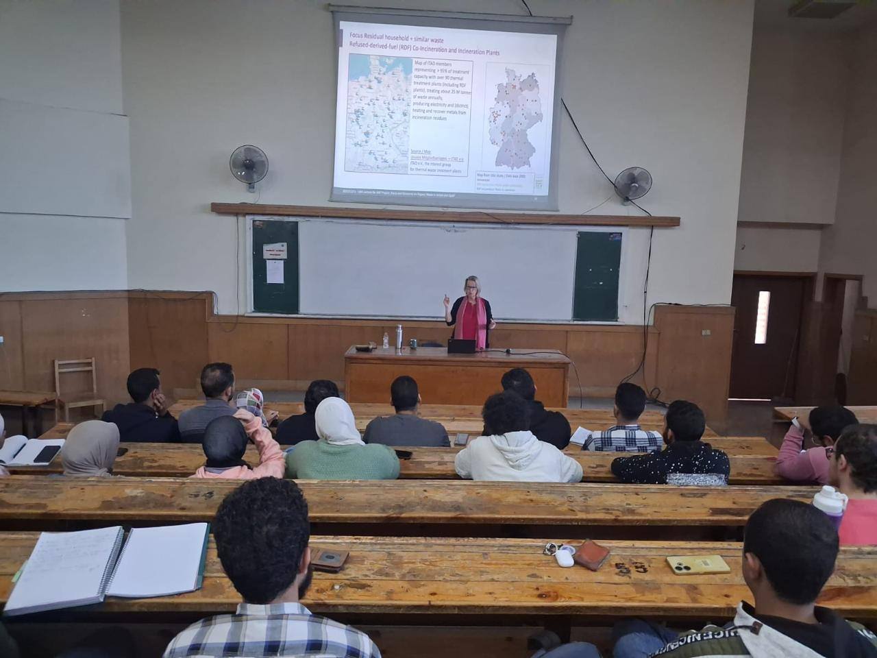 وفي الإطار الأكاديمي، قدم الخبراء ثلاث محاضرات علمية لطلاب قسم الهندسة المدنية، تناولت التحديات والحلول الخاصة بإدارة المخلفات العضوية، ودور الذكاء الاصطناعي في إدارة المخلفات الصلبة، وتأثير إدارة المخلفات على التغيرات المناخية، إلى جانب عقد جلسة نقاشية مفتوحة مع الطلاب لربط الجانب الأكاديمي بالتطبيق العملي.