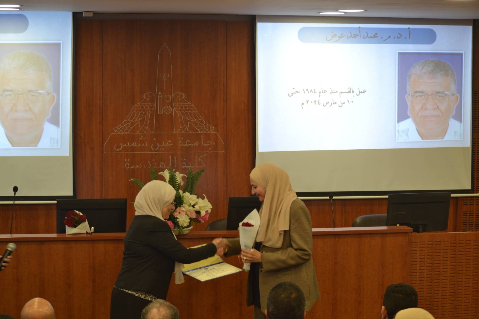 وأقيمت الفعالية بقاعة السيمينار بمبنى المكتبة المركزية بالكلية ، وبحضور بعض أسر الأساتذة الراحلين، وعدد من أعضاء هيئة التدريس والهيئة المعاونة بالقسم، وسط أجواء إنسانية اتسمت بالمحبة والتقدير المتبادل.