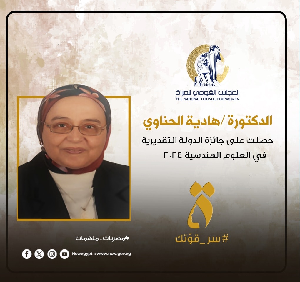 كلية الهندسة تهنئ الدكتورة هادية الحناوي لحصولها على جائزة الدولة التقديرية في العلوم الهندسية لعام 2024