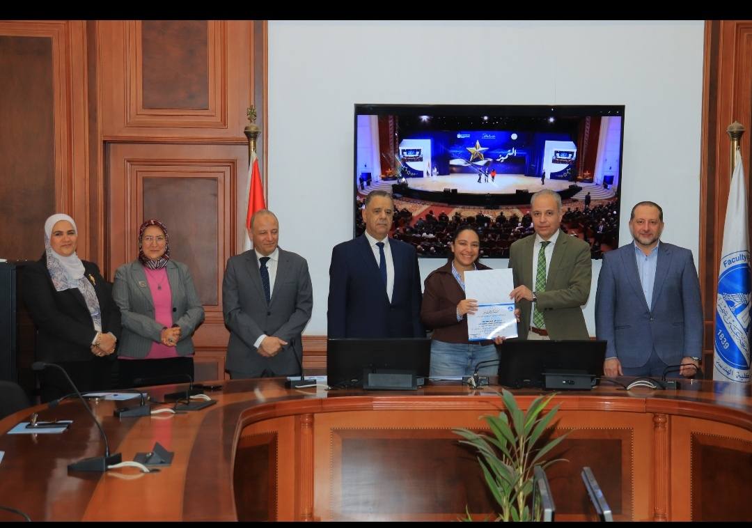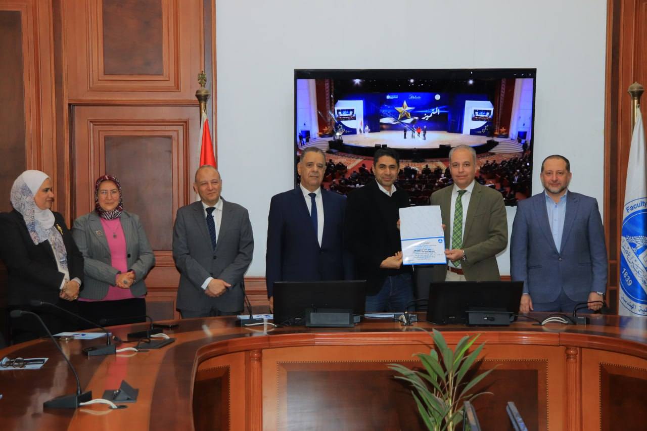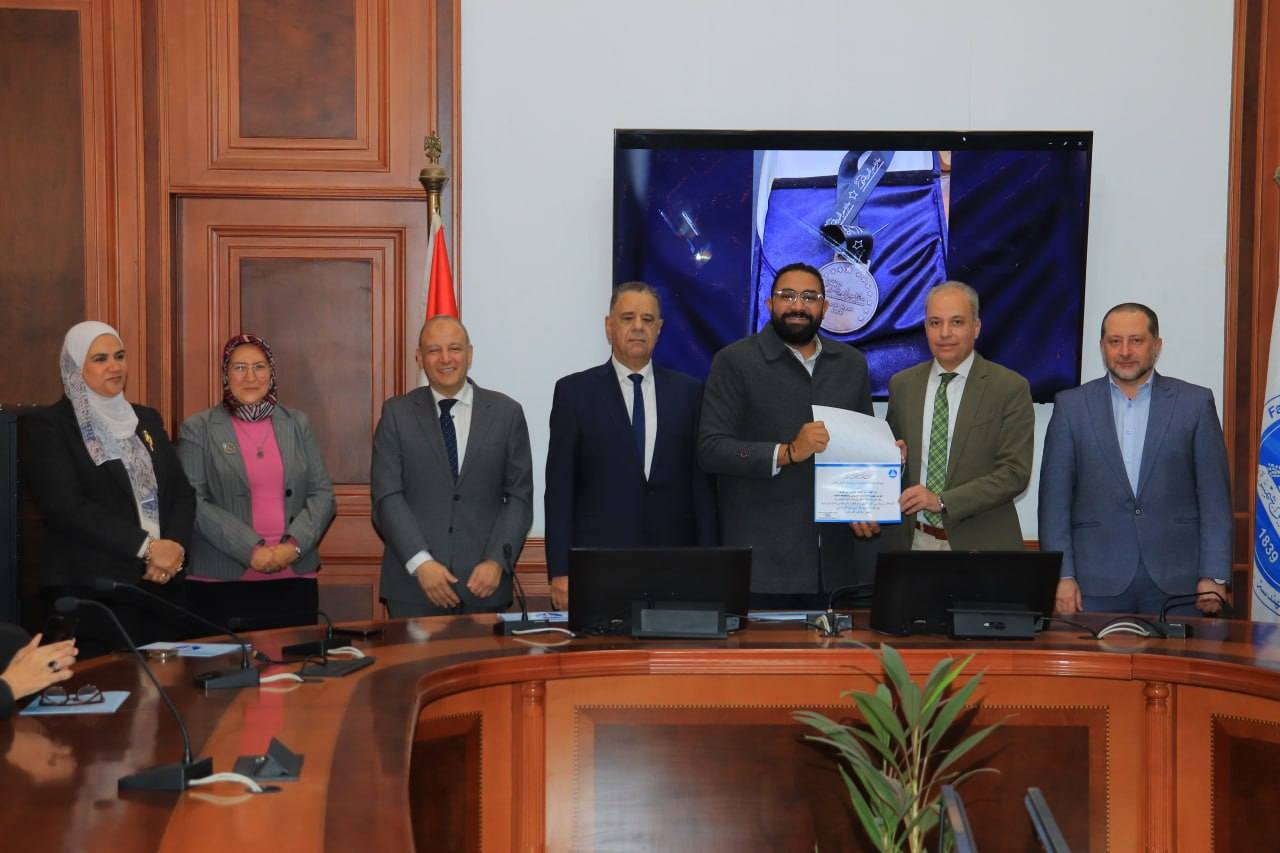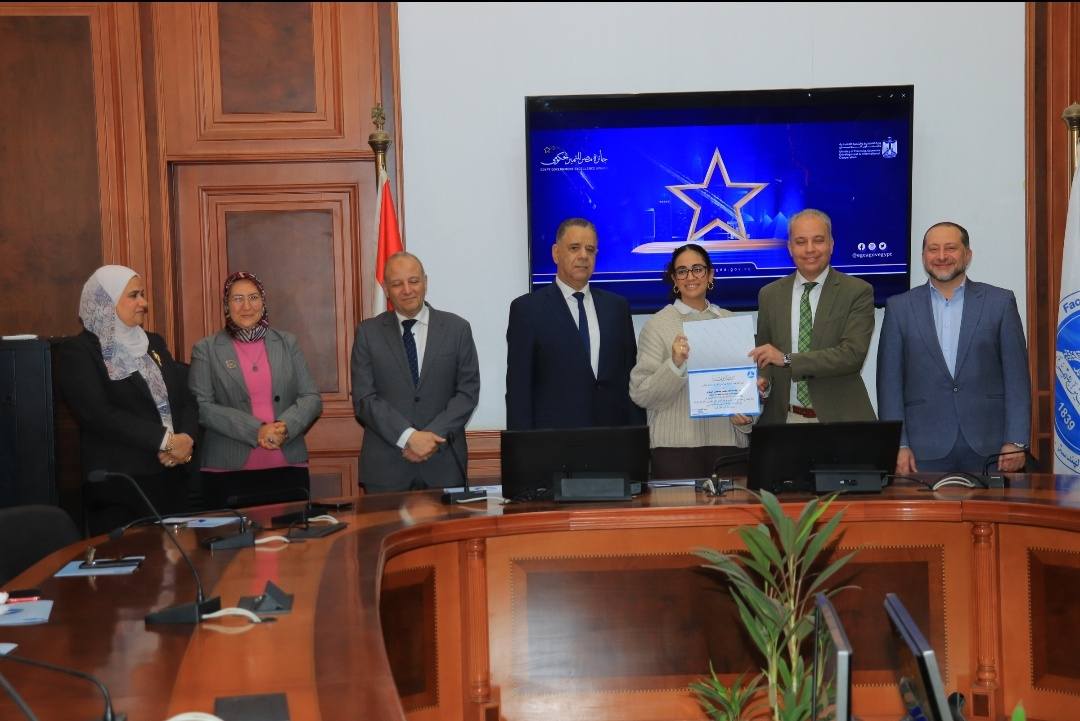 تكريم فريق العمل بكلية الهندسة بعد الفوز بالمركز الثالث في جائزة مصر للتميز الحكومي (الدورة الرابعة)