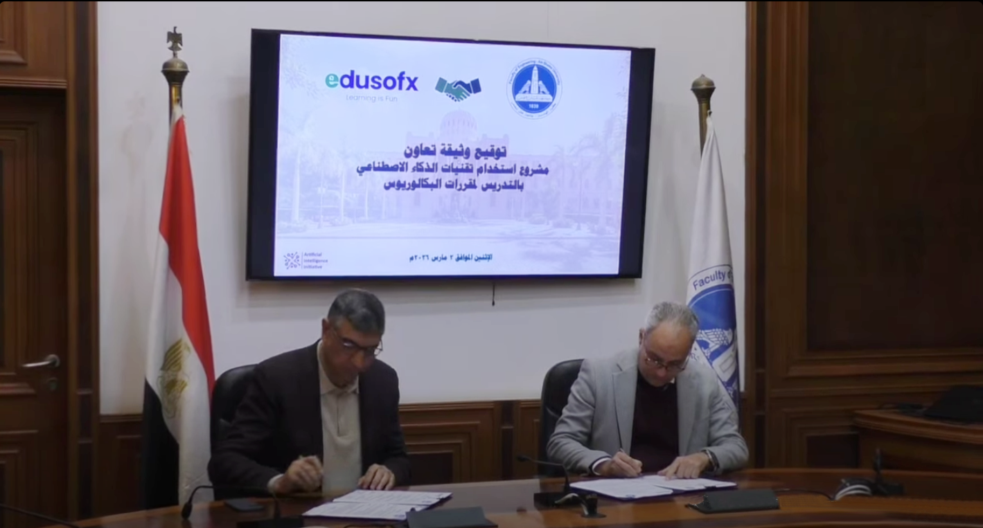 مراسم توقيع عقد تعاون مشترك بين كلية الهندسة جامعة عين شمس وشركة إديوسوفكس لتقنية المعلومات يوم الاثنين 2 مارس 2026م