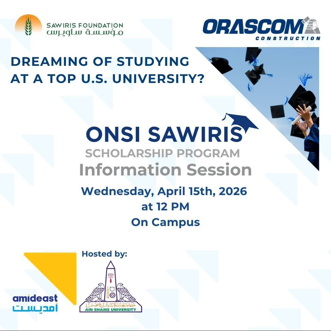 تحت رعاية الأستاذ الدكتور عمرو شعت، عميد كلية الهندسة – جامعة عين شمس، والأستاذة الدكتورة مروة خليفة، وكيل الكلية لشؤون الدراسات العليا والبحوث، تتشرف كلية الهندسة بدعوة طلابها ومعيديها وخريجيها لحضور الجلسة التعريفية الخاصة ببرنامج منح أنسي ساويرس الدراسية لبرامج الدراسات العليا.
